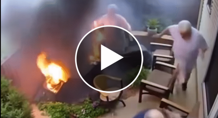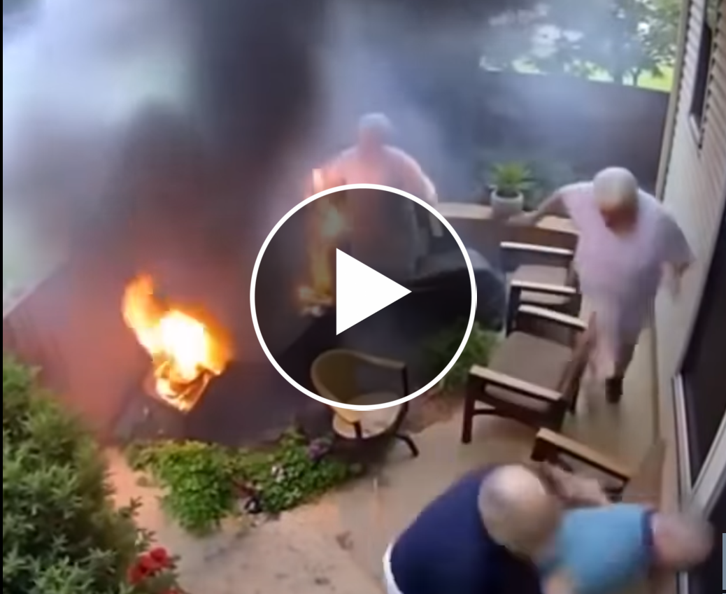 A quiet weekday morning in the courtyard garden… But never, ever leave this next to the grill. Watch…