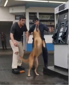 When the chaos ended, the reddish-brown dog sat quietly near the pumps, tail wagging. The same men who cursed him minutes earlier now knelt, patting his wet fur.