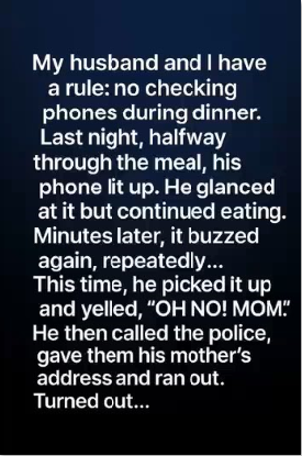 Halfway through the meal, my husband’s phone lit up. He ignored it at first, but the buzzing kept coming—again and again.