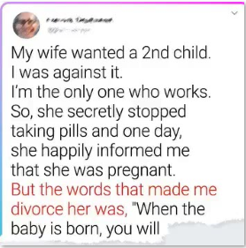convinced he’d “come around.” The revelation shattered his sense of trust. Though he supported her through the pregnancy,