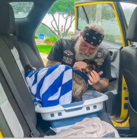 Through the rearview mirror, I watched him: a man who looked like a storm on the outside, yet carried a heart of light. At the clinic, the vets rushed the puppy inside. Robert waited silently, staring at his hands, shaking from more than just fear.
