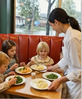 A worn snapshot reminds them of that rainy night—four small figures, a waitress, and a tray that became a lifeline. Love returned not as a transaction, but as home, purpose, and four thriving lives—a quiet currency that compounds across generations.