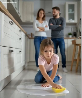 The housekeeper often forced little Emily to do chores she was paid to handle herself. But one afternoon, everything changed. Richard, Emily’s father, returned home unexpectedly two hours early and walked into a scene that froze him in place.