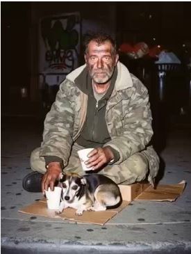 I’ve been out here with Dibs for almost four years. He’s more than a dog—he’s the last thing I got from my brother before he overdosed. Everyone around knows us. Some hand us snacks. Some pretend we don’t exist. Whatever.