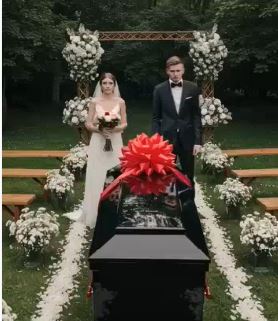 From the distance, a group of people approached… carrying a coffin wrapped in a bow. They brought it to the altar, placed it down, and left without a word.