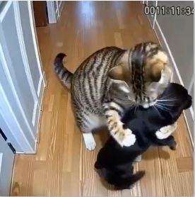 A firm knock at the door snapped me from my thoughts. Standing there was a police officer, with our ever-watchful neighbor, Mrs. Miller, at his side. “Ma’am, do you own a gray tabby?” he asked, his tone calm but serious. My heart skipped. I nodded, bracing for bad news — maybe Marsa had caused trouble or stolen someone’s pets. But what he said next silenced every worry. The officer explained that a mother dog nearby had gone missing, leaving her litter behind. Neighbors had spotted a cat running back and forth from the area, carrying something small each time. When they followed her trail, it led straight to our house — and to the rescued puppies now sleeping soundly in a pile of blankets.