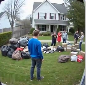 The next day, I went to collect some of Dad’s personal belongings. Instead, I found my books, clothes, and childhood memorabilia scattered across the lawn. Mom stood in the doorway, arms crossed, Emma at her side.